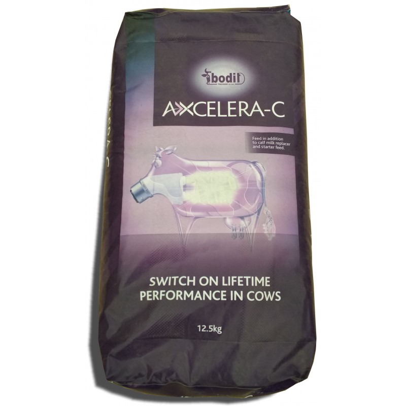 Axcelera-C je ve srovnání s MKS velmi snadná na použití, nevyžaduje žádné míchání. Funguje jak s automaty, tak s manuálním krmením. Pro dosažení nejlepších výsledků krmte Axceleru C, jako náhradu startéru od 3. dne stáří minimálně do 3 týdnů stáří. Poté krmte 150g Axcelery C na /ks/den až do odstavu nejlépe do krmítka na již nadávkovaný startér. Zkrmuje se v suchém stavu. Skladuje se v suchu, chladnu a pytle musí být umístěny na neprodyšné podložce.