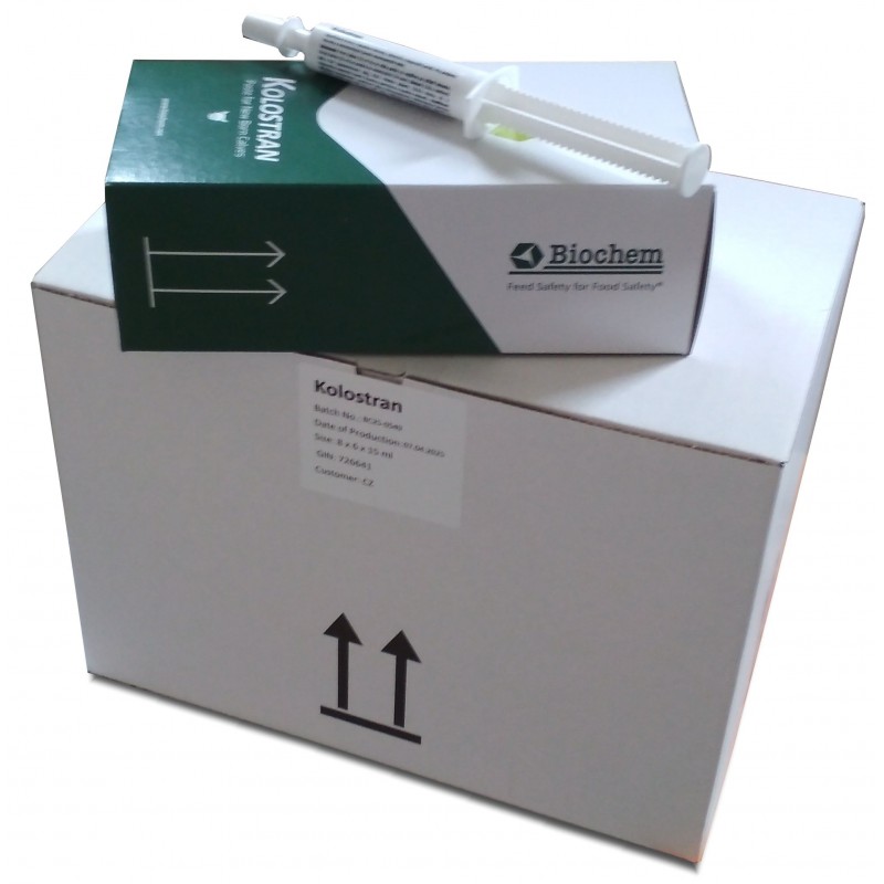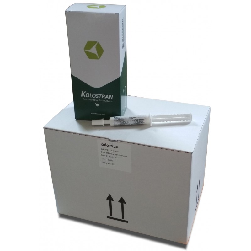 Použití: KOLOSTRAN PASTA je určena pro novorozená telata. Jejich odolnost k působení mikroorganismů přítomných v prostředí závisí na kvalitě a množství kolostra přijatého první den po narození, které jsou často nedostačující. Důsledkem je zvýšená vnímavost telat k infekcím a častý výskyt respiračních a střevních onemocnění. KOLOSTRAN PASTA odolnost telat zvyšuje, podání ihned po narození umožňí vstřebání protilátek do krevního oběhu a dlouhodobě tak zvyšuje celkovou imunitu telat. Krátkodobě působí v trávícím traktu, kde společně s mléčnými zárodky Enterococcus faecium (NCIMB 11181) tlumí rozvoj střevních infekcí.